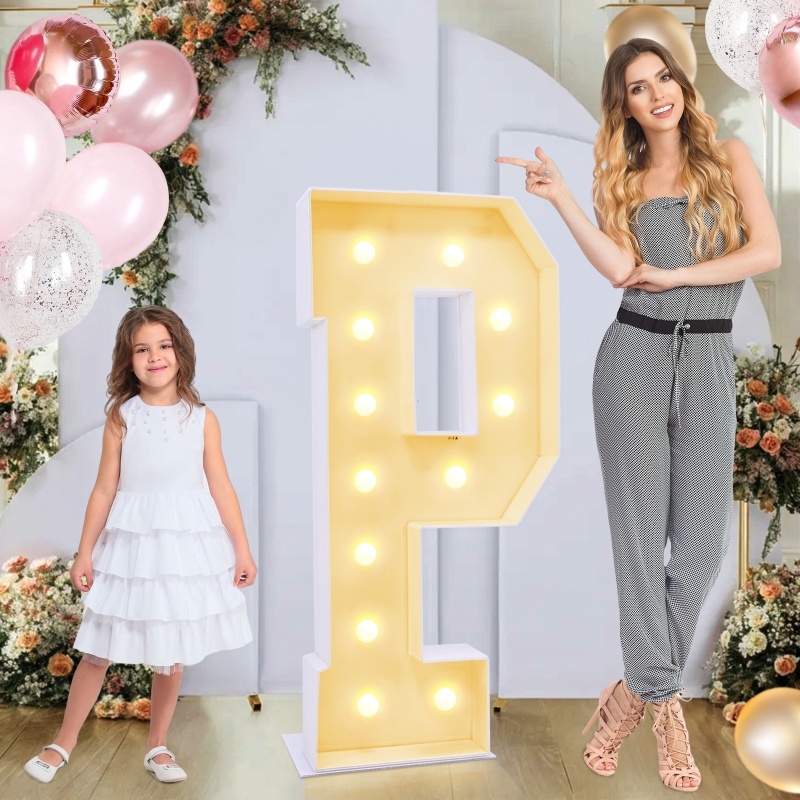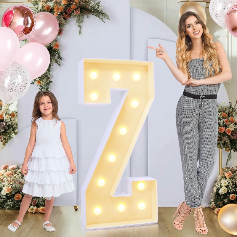 4ft Number 2 Light Up Sign, Modern Marquee for Numbers 4 Feet Tall, Hollow Board Material, Tabletop Mount, Perfect for Party Decorations