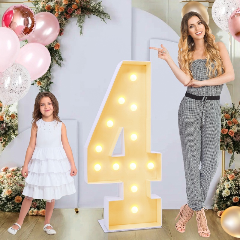4ft Number 4 Light Up Sign, Modern Marquee for Numbers 4 Feet Tall, Hollow Board Material, Tabletop Mount, Perfect for Party Decorations