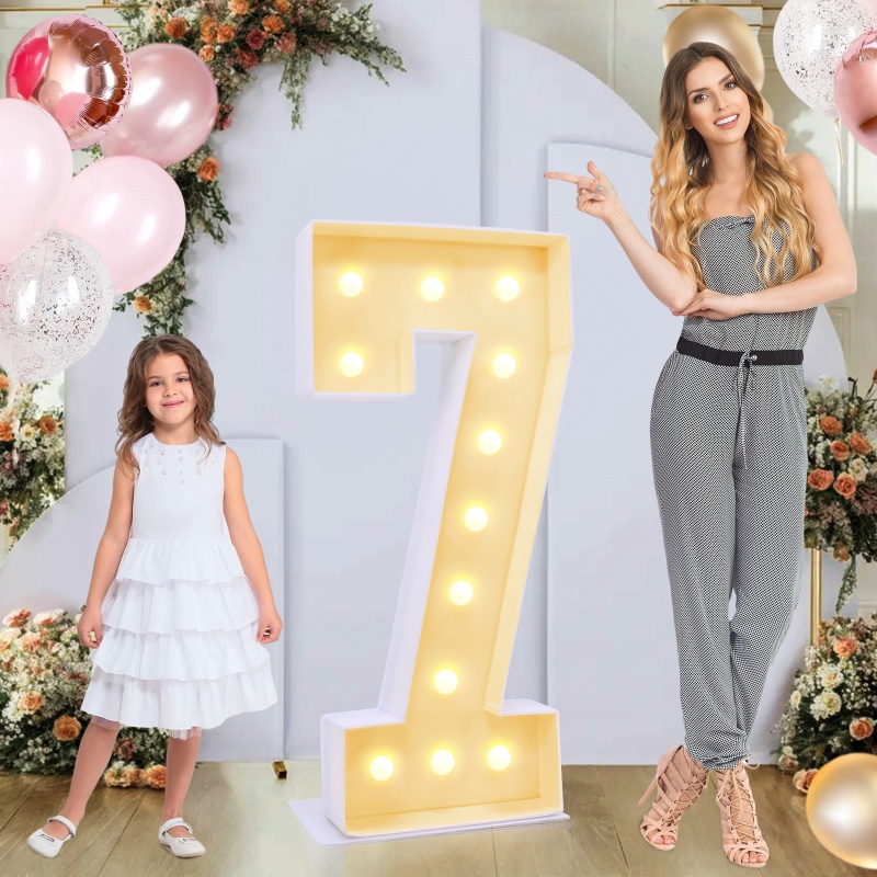 4ft Number 7 Light Up Sign, Modern Marquee for Numbers 4 Feet Tall, Hollow Board Material, Tabletop Mount, Perfect for Party Decorations