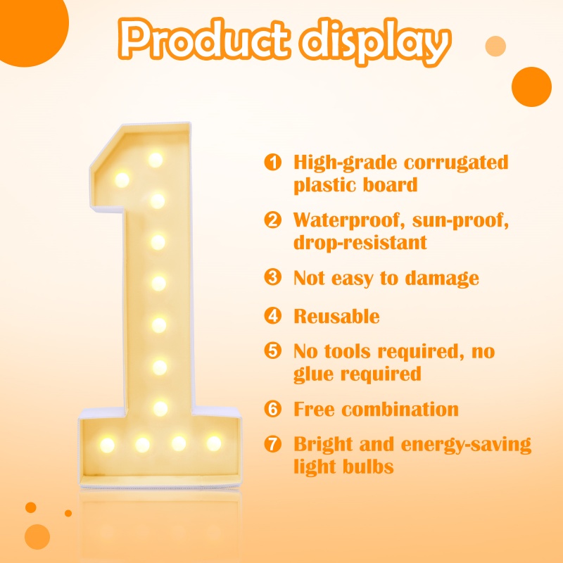 Easy To Assemble Light Up Numbers: Our unique light up numbers 4ft are not afraid of water and is not easily damaged. Pre-cut boards with clear markings help you set up your big light up numbers with minimal effort, and quickly without any tool. The combination of number 1 balloons and fake flowers will make the decoration full of vitality, romance, and joy, adding a sense of celebration to the party. (Note: balloons and fake flowers are not included, you need to prepare them yourself)