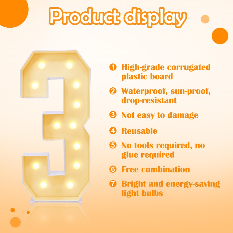 Reusable Light Up Numbers For Party: While others may use single-use KT boards, our large numbers for party decor are made from corrugated plastic board, offering versatility and reuse. After your event, simply disassemble them into components that can serve multiple purposes. Rather than discarding light up marquee for numbers, explore how they can be applied in different ways, extending their functionality and value.