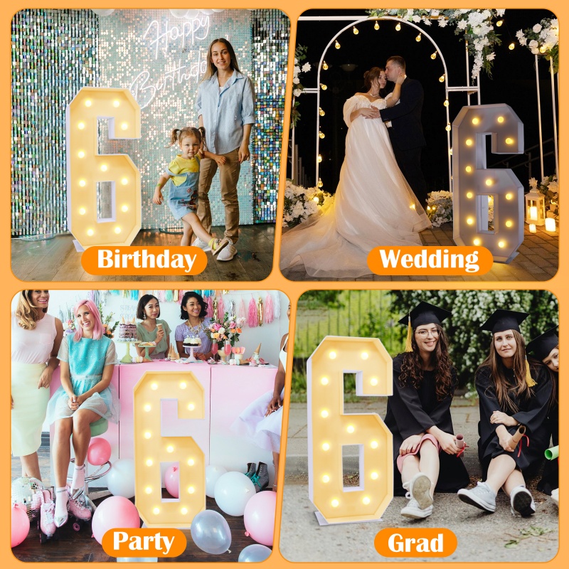 Upgraded Light Up Numbers 4ft Make Your Party Unforgettable: These GGPL Marquee For Numbers steal the show, instantly elevating any celebration. Perfect for graduations, and wedding decorations for reception—light up numbers instantly grab attention and create that "wow" factor every party needs.